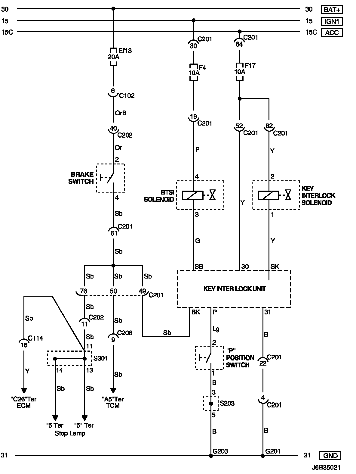 Key Interlock Circuit Wiring Diagram (For STATION WAGON Model):