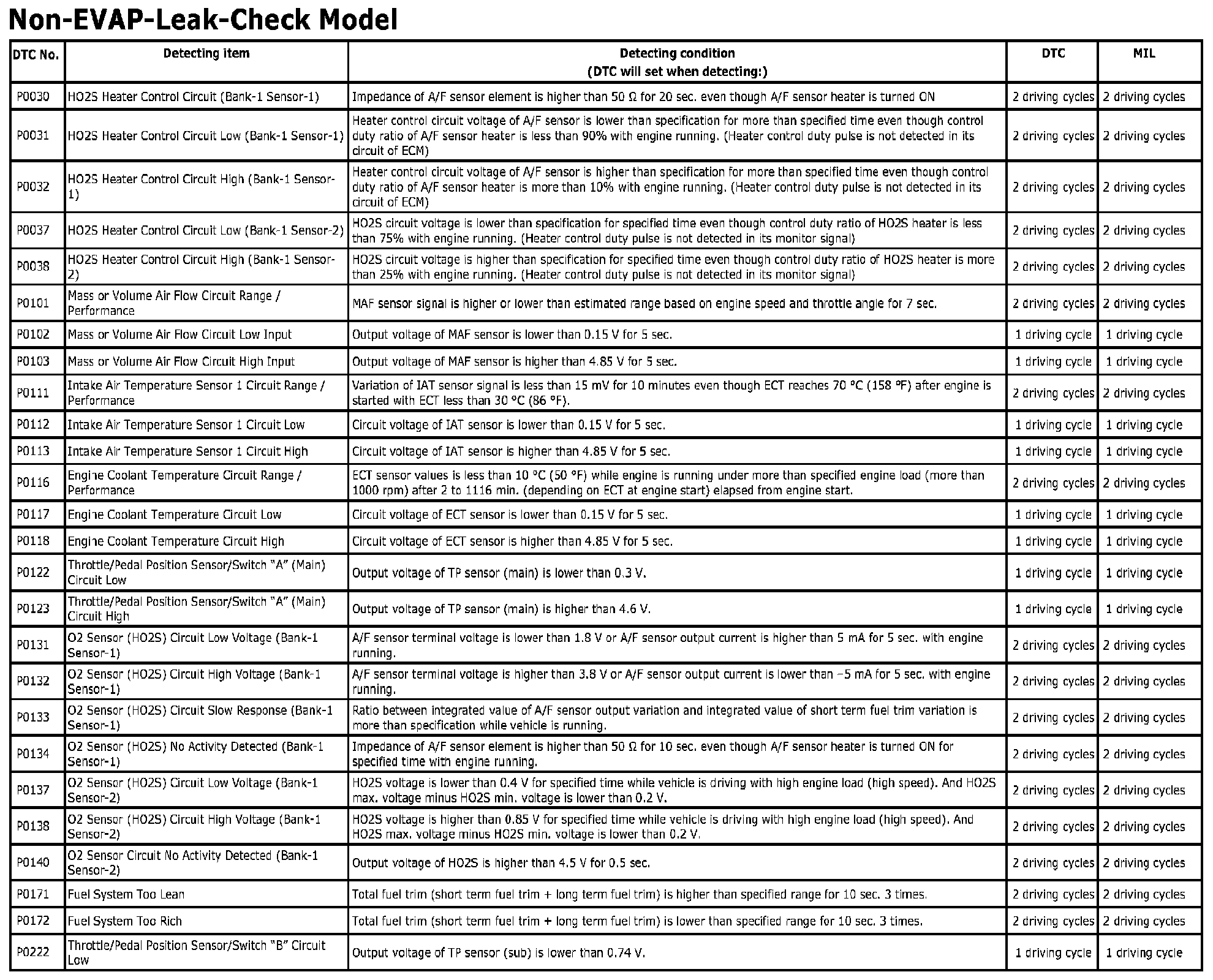 Non-EVAP-Leak-Check Model