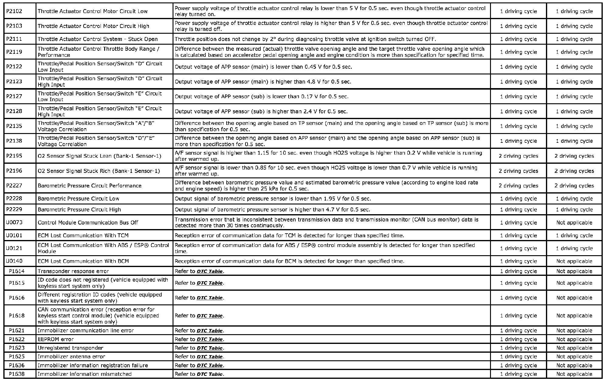 DTC Table