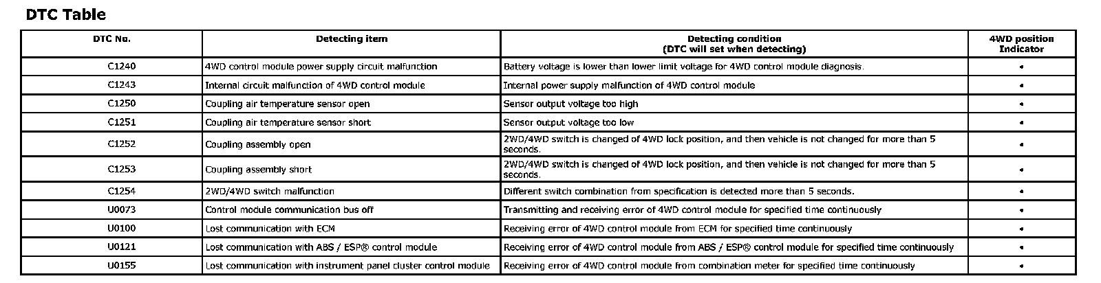 DTC Table