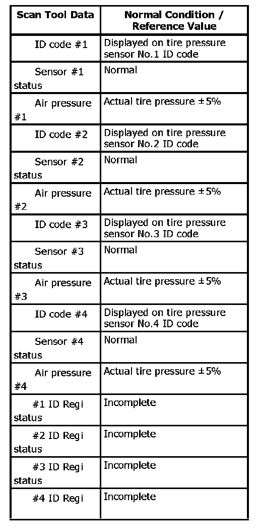 NOTE: Each tire pressure sensor is numbered and that number is assigned in the order as its ID code is registered in BCM. It does not indicate the tire position (LF, RF, LR and RR). Check what number of the tire pressure sensor is assigned to which tire, referring to How to Identify Tire Pressure Sensor Number.