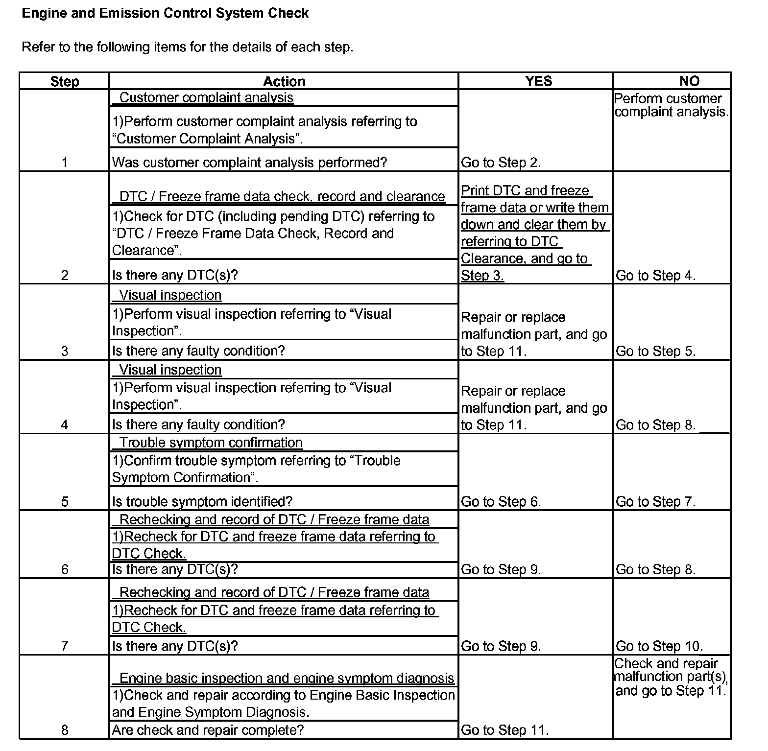 Engine and Emission Control System Check