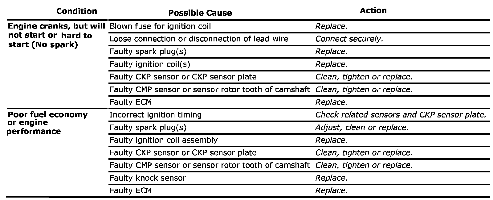 Ignition System Symptom Diagnosis: