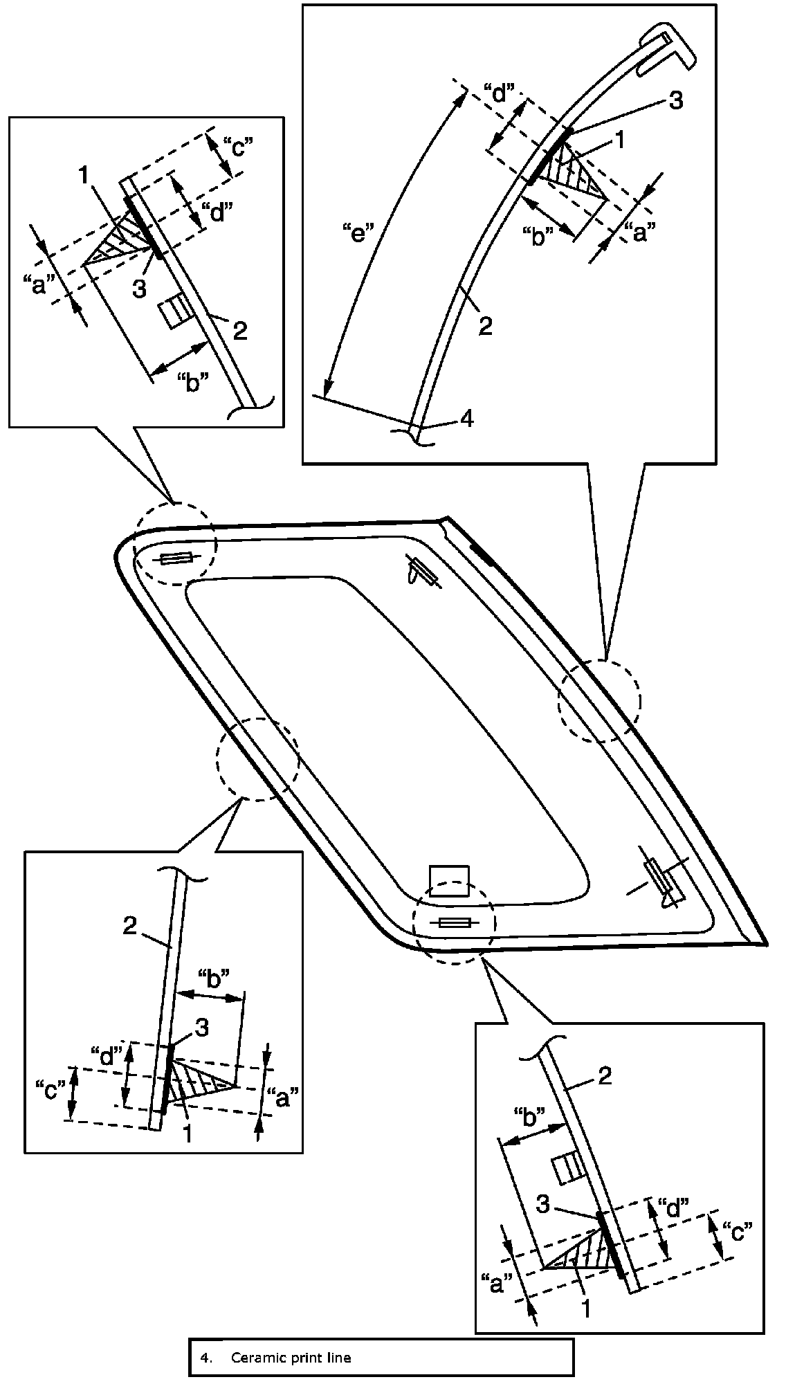 Adhesive amount specifications and position for rear quarter window