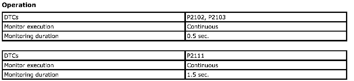 Refer to DTC P2103: Throttle Actuator Control Motor Circuit High. P2103
