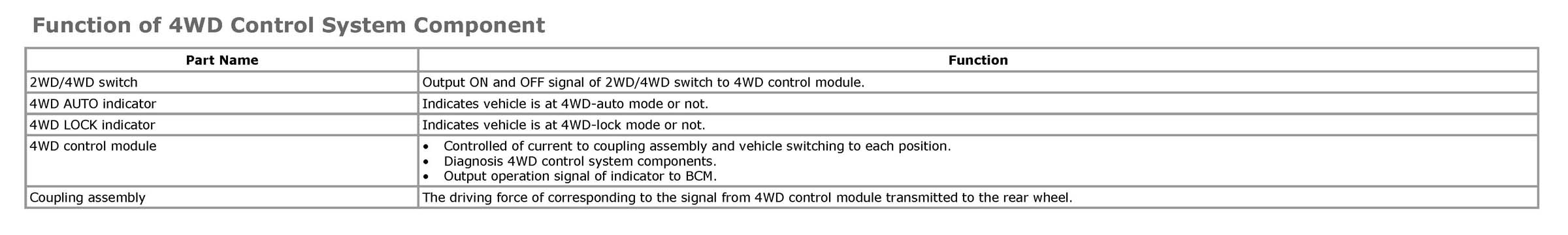 Function of 4WD Control System Component