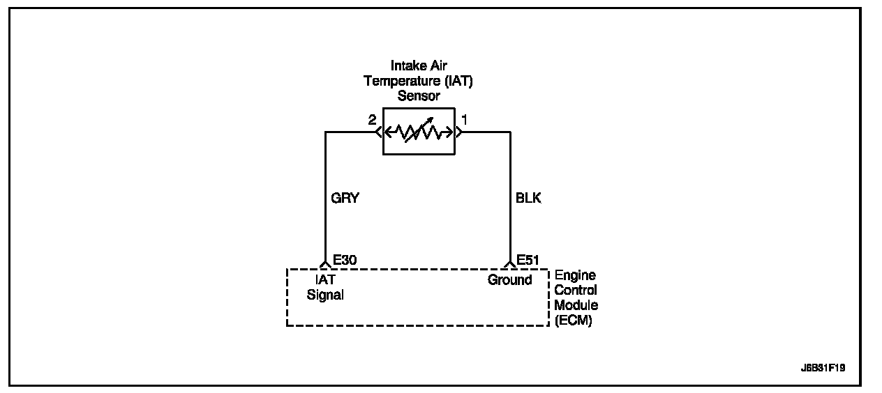 The Intake Air Temperature (IAT) sensor uses a thermistor to control the signal voltage to the Engine Control Module (ECM). The ECM supplies a 5 volt reference and a ground to the sensor. When the air is cold, the resistance is high; therefore the IAT signal voltage will be high. If the intake air is warm, resistance is low; therefore the IAT signal voltage will be low.