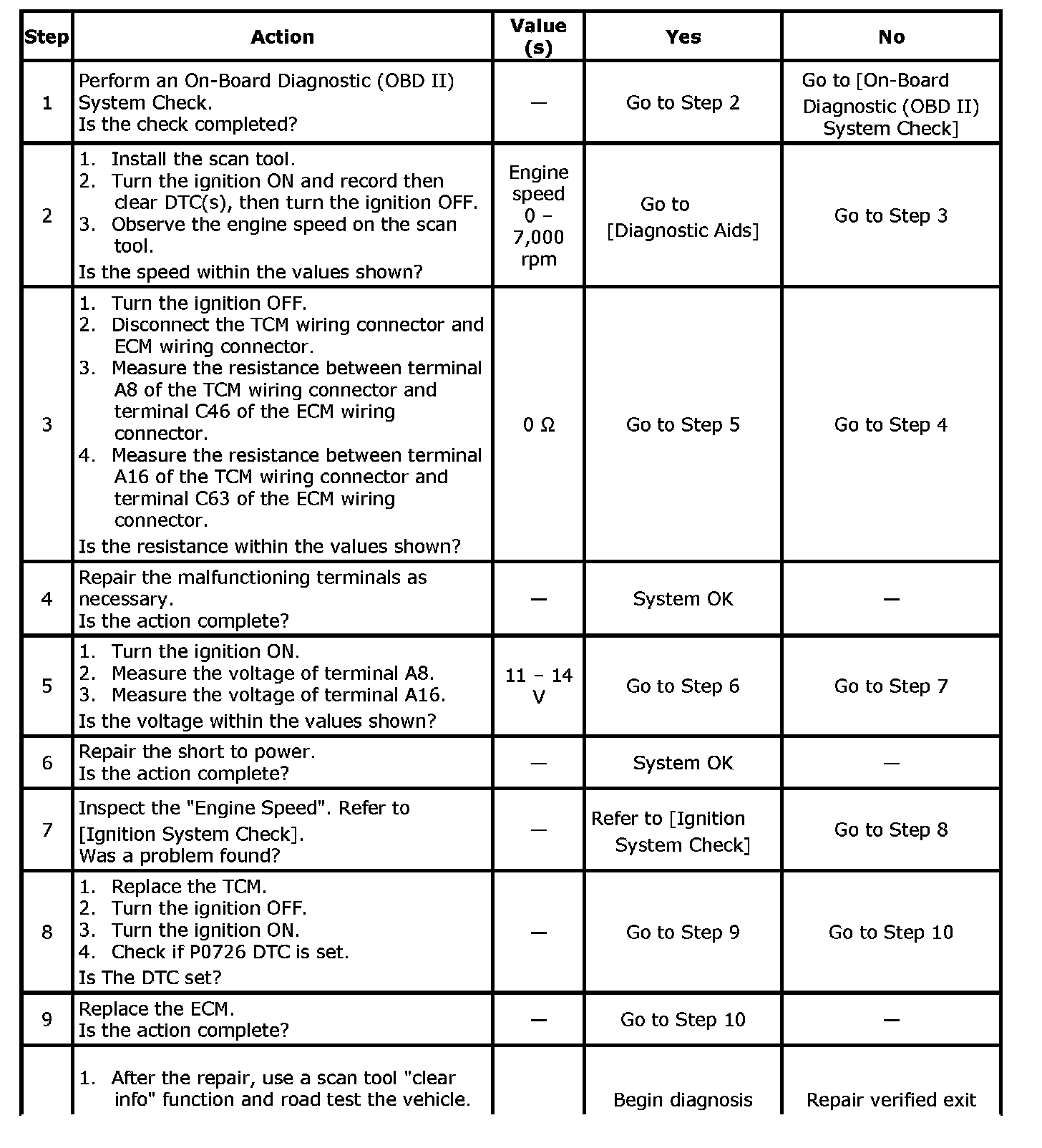 - No engine speed error DTCs P0727, P0725.