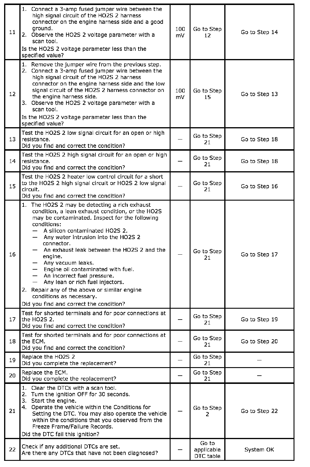 1. If the voltage does not change more that the specified value, the condition is present.