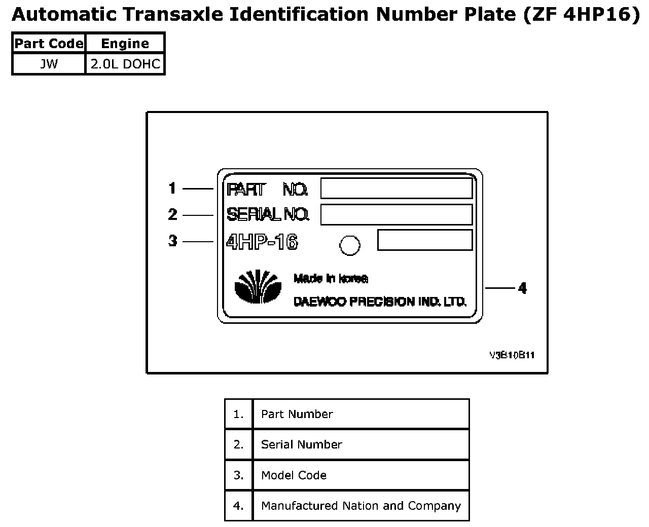 Automatic Transaxle IdentificationAutomatic Transaxle Identification Number Plate (ZF 4HP16)