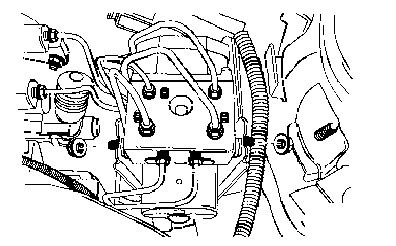 7. Move the brake pipes aside far enough to allow for lifting the ABS 5.3 unit out of the mounting bracket.