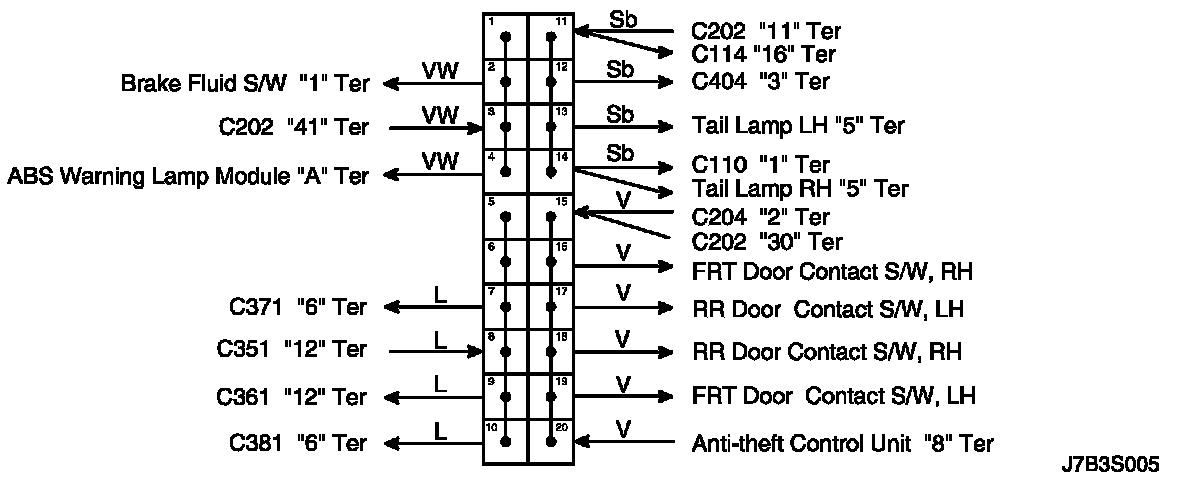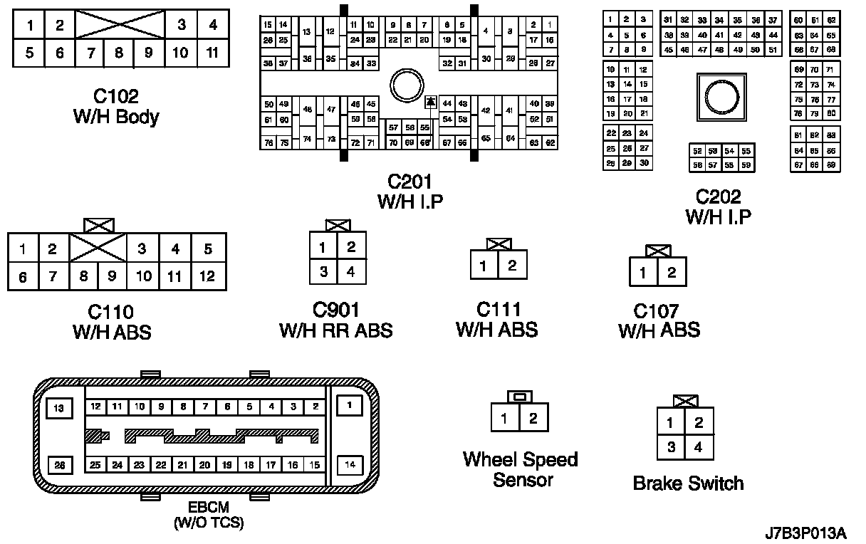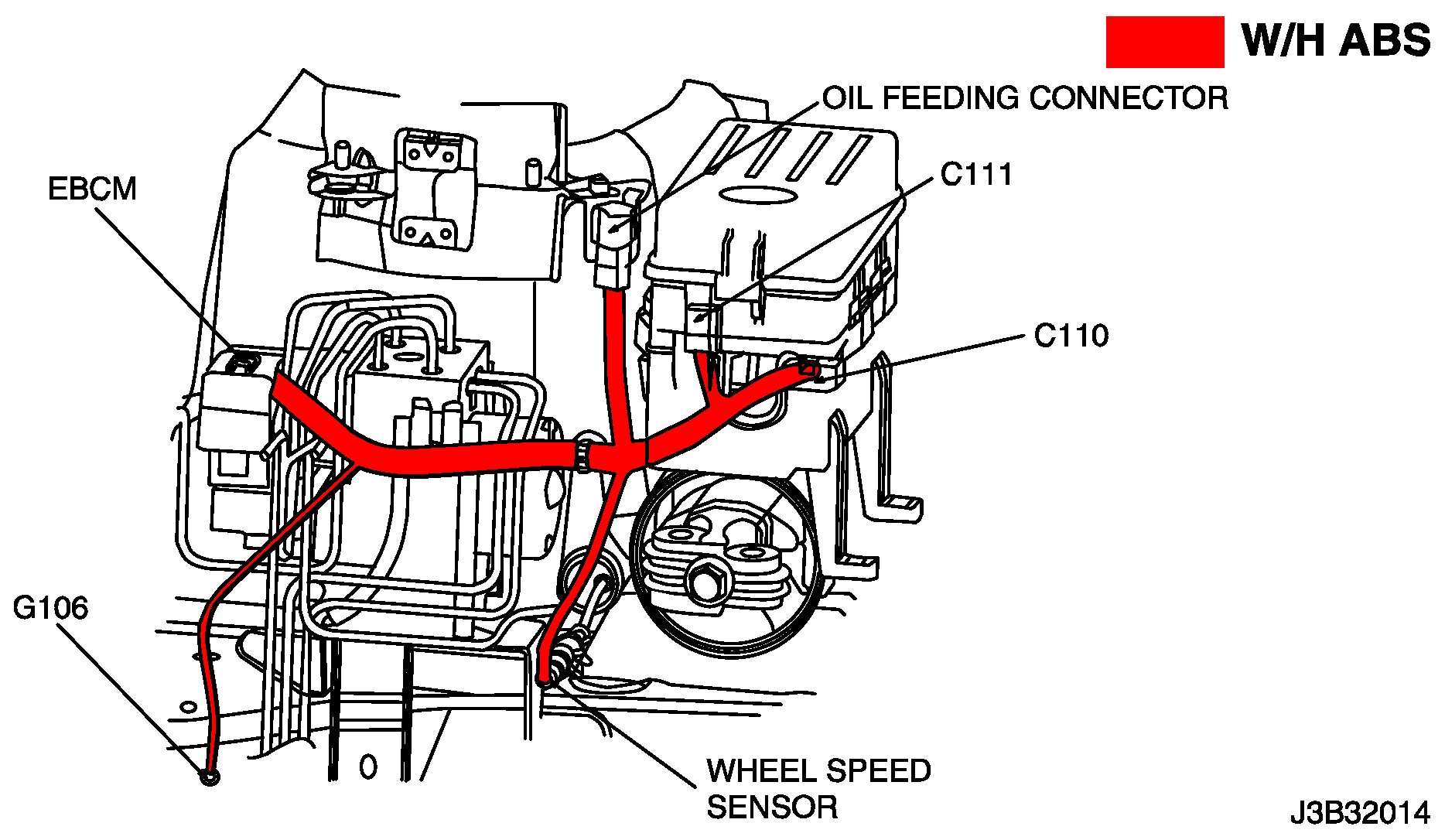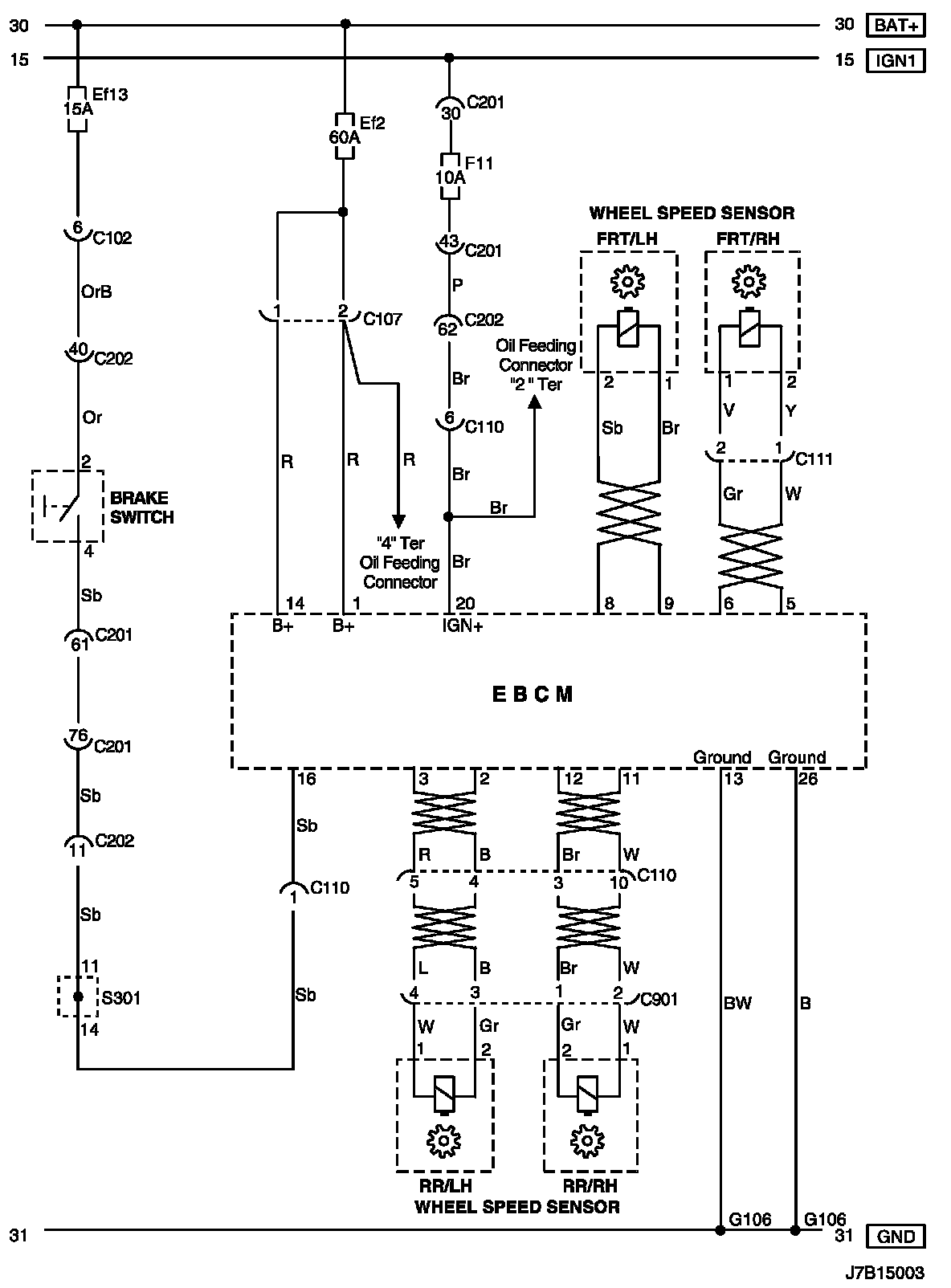 ABS (Antilock Brake System) Wiring DiagramPower Supply, Wheel Speed Sensor and Brake Switch Circuit