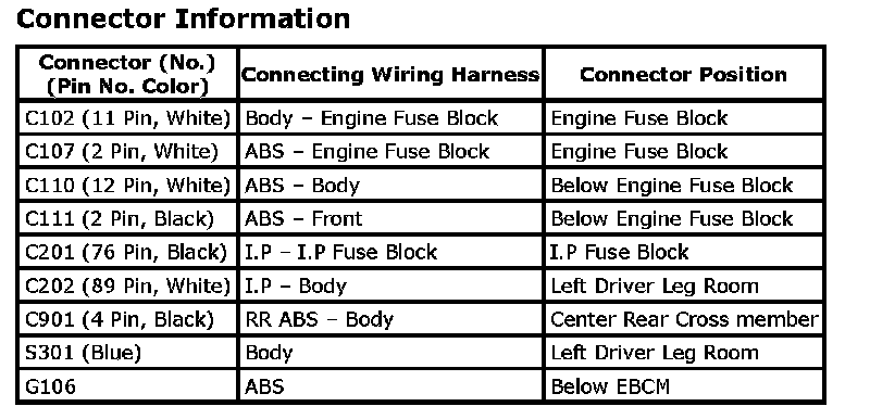Position of Connectors and Grounds - W/H ABS Rear Sensor: