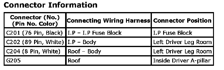 Connector Identification Symbol and Pin Number Position: