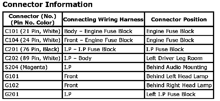 Position of Connectors and Grounds - W/H Instrument Panel: