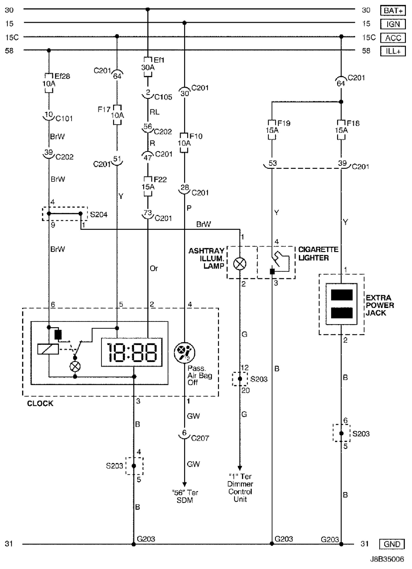 Clock, Cigar Lighter, Ashtray Illum. Lamp and Extra Power Jack Circuit Wiring Diagram (M/T: NOTCHBACK and HATCHBACK Model):