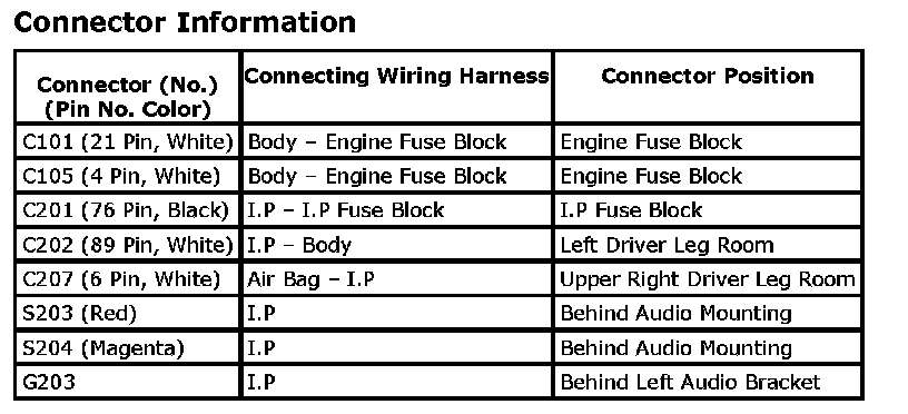 Position of Connectors and Grounds - W/H Instrument Panel: