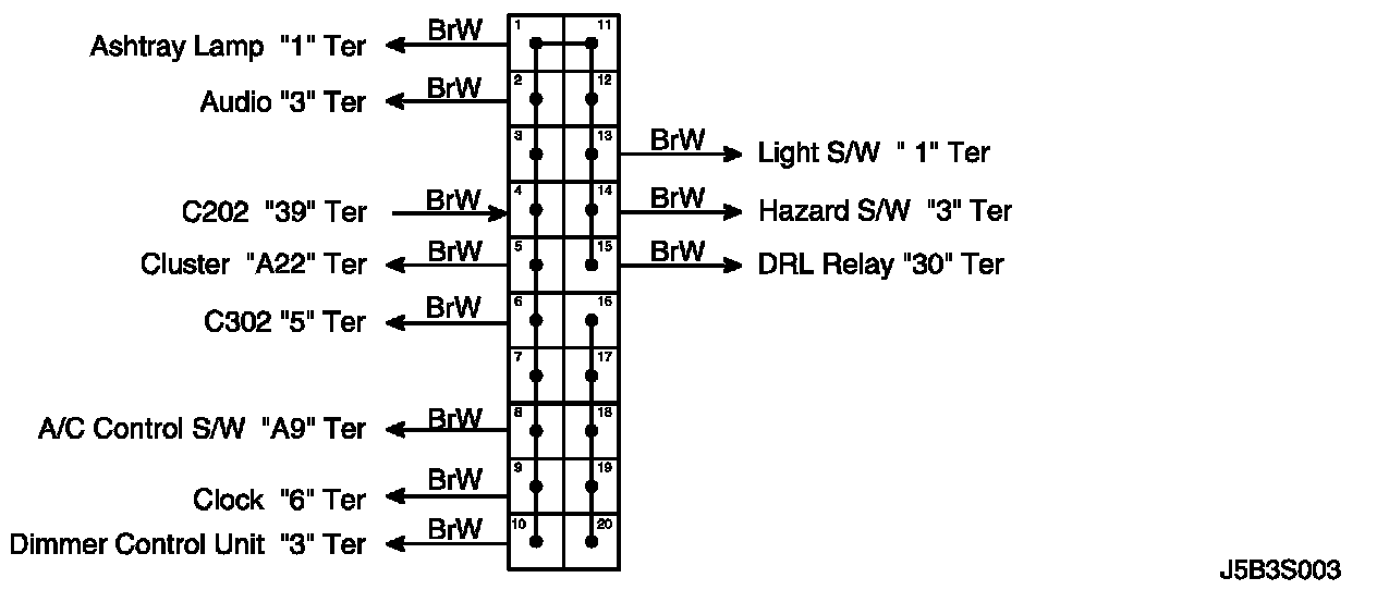 Clock, Cigar Lighter, Ashtray Illum. Lamp and Extra Power Jack Circuit Wiring Diagram(M/T: NOTCHBACK and HATCHBACK Model)