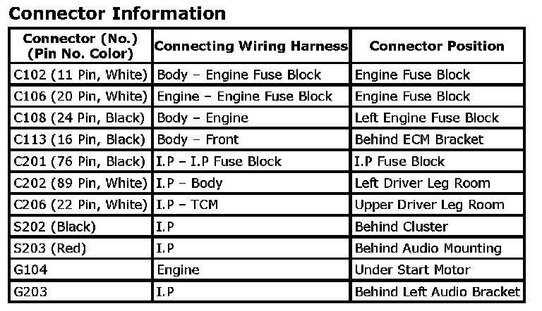 Position of Connectors and Grounds - W/H Instrument Panel: