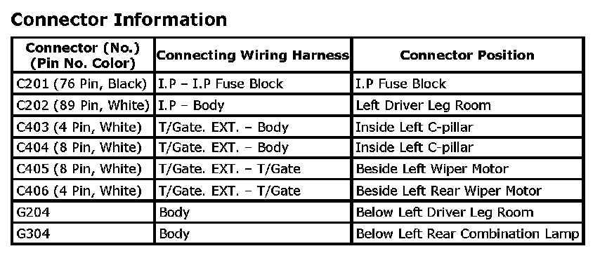 Connector Identification Symbol and Pin Number Position: