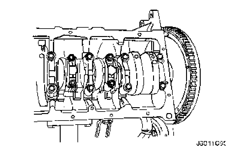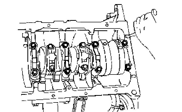 11. Remove the crankshaft bearing cap bolts and the caps.