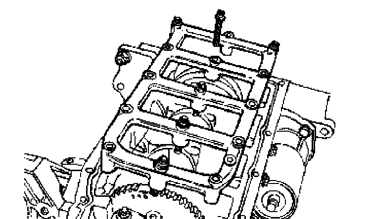 28. Install the crankshaft bearing bridge and oil pan scraper bolts.