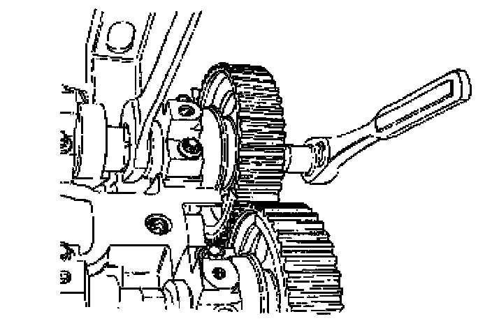 47. Install the exhaust camshaft gear bolt while holding the exhaust camshaft firmly in place.