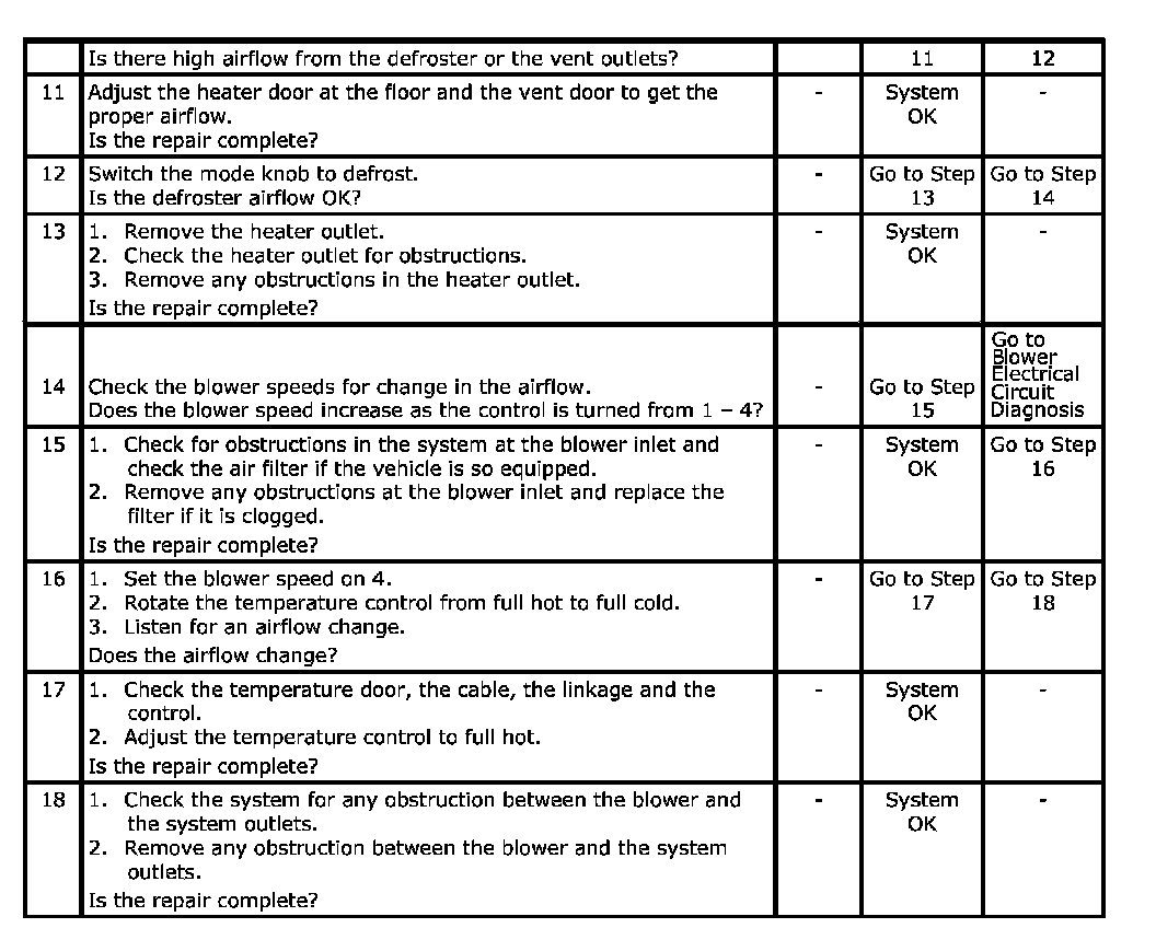 Improper Air Delivery or No Mode Shift Diagnosis