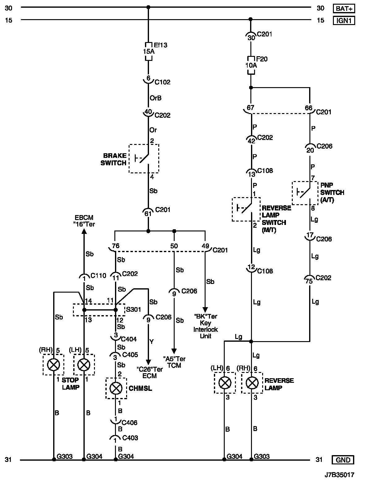 (For STATION WAGON Model)Stop Lamp, Center High Mount Stop Lamp (CHMSL) Reverse Lamp Circuit Wiring Diagram (For STATION WAGON Model):