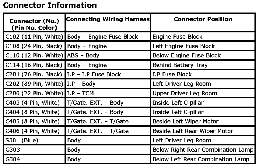 Connector Identification Symbol and Pin Number Position: