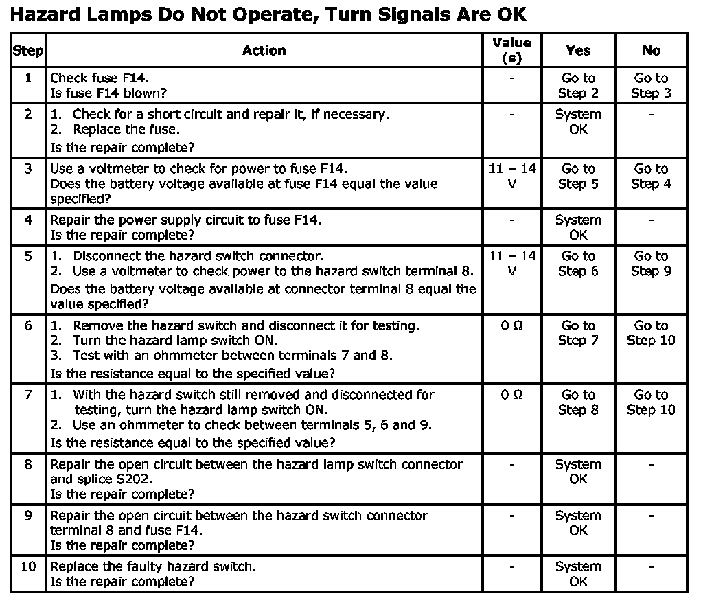 Hazard Lamps Do Not Operate, Turn Signals Are OK