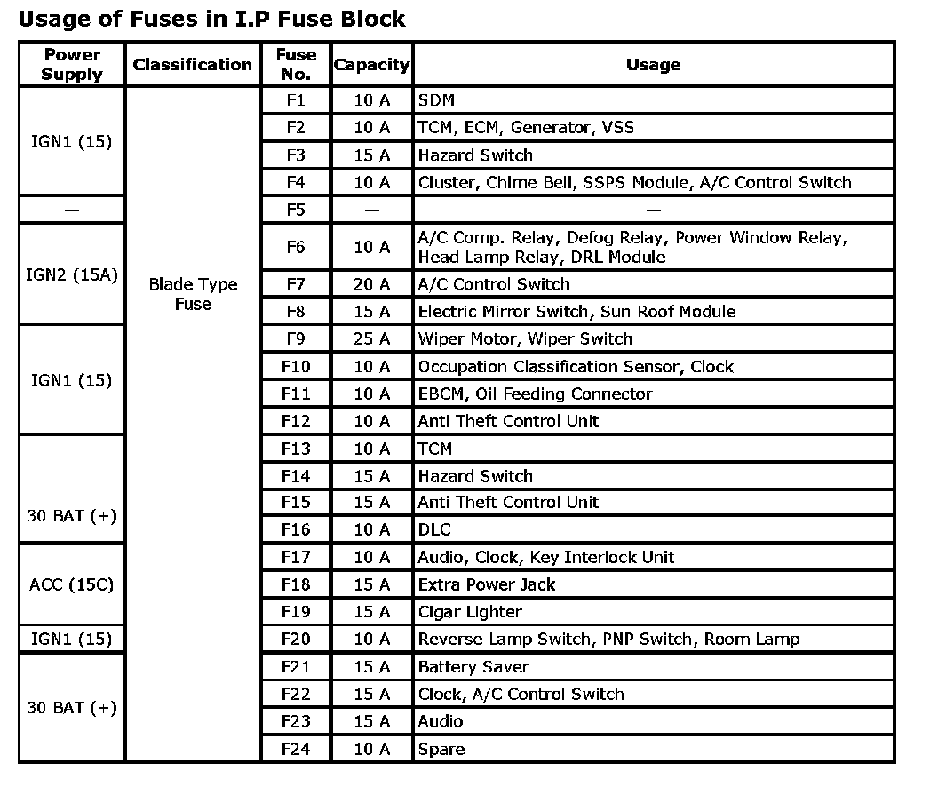 Engine Room Relay and Fuse Block (Position of Relay and Fuse):