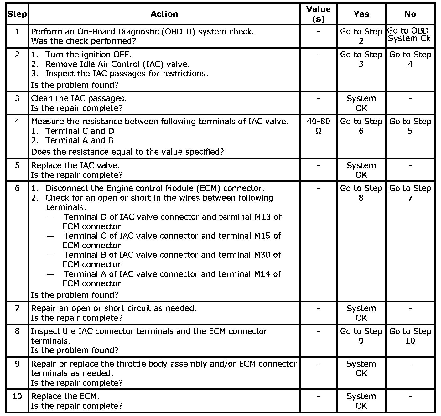 2. Fully extending the IAC valve may cause an engine stall. This may be normal.