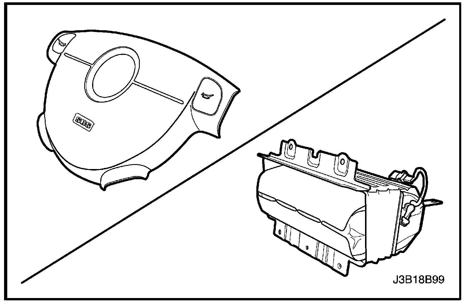 WARNING: Tempering with passenger airbag module creates the risk of an injury from unexpected deployment. Therefore, the passenger airbag module should never be disassembled. The passenger airbag module is on the passenger part of the instrument panel. The passenger airbag module contains an igniter charge and a gas generator to inflate the folded airbag.