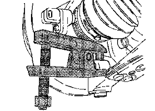 4. Remove the brake caliper from the rotor. Support the caliper so it does not hang from the hydraulic brake hose.