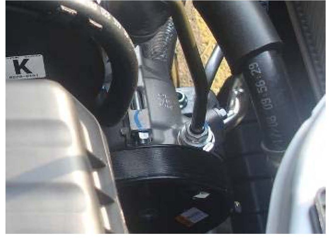 7. Check hose connections at the power steering rack and pinion input shaft. If a leak is found remove fitting and make sure the fittings and O-ring are not damaged, loose, or cross threaded.