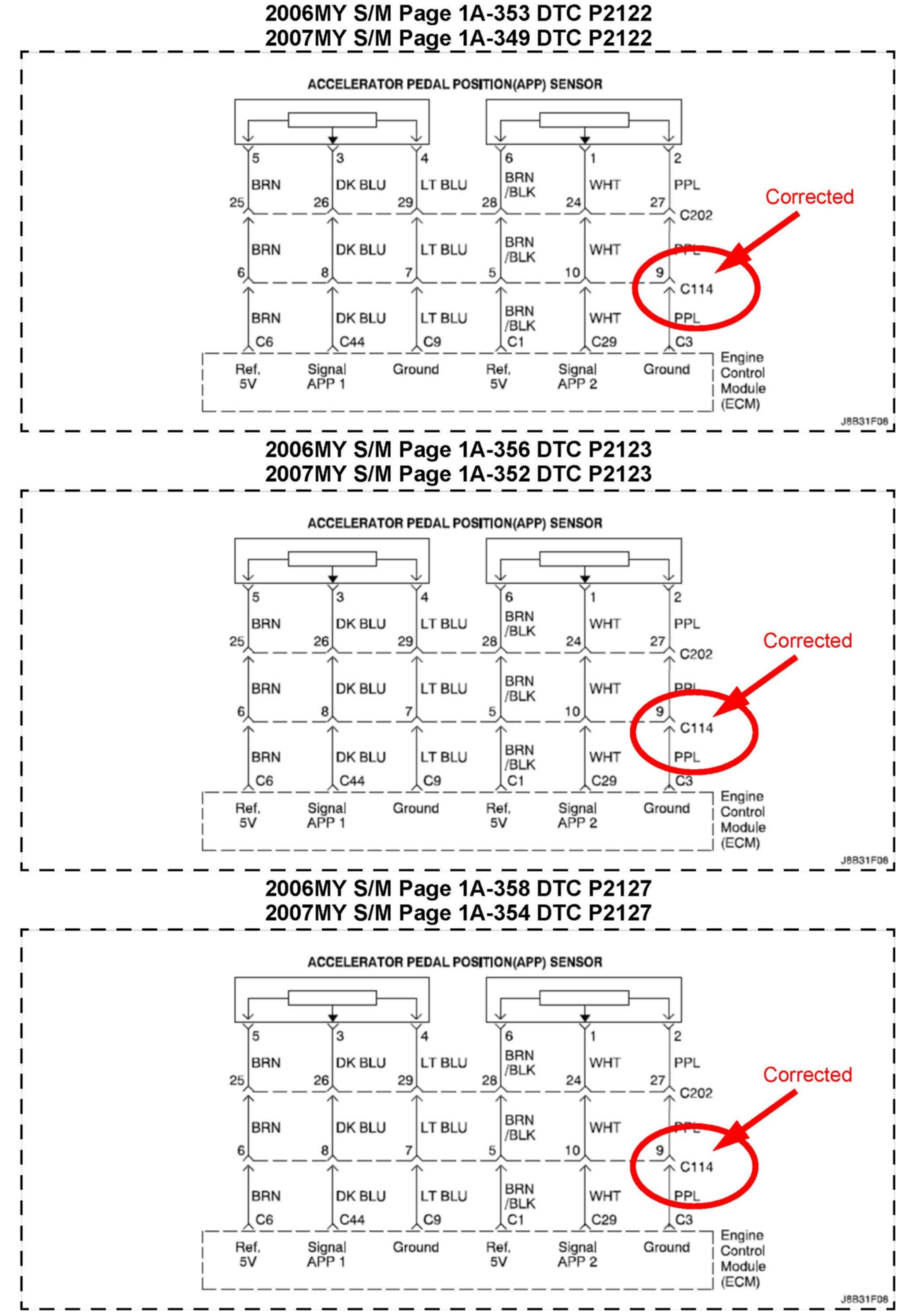 SERVICE MANUAL UPDATE: WIRING DIAGRAM UPDATE FOR DTC P2122, P2123, P2127, P2128, 2138, ECM DIAGRAM 6/7, AND ACCELERATOR PEDAL POSITION (APP) SENSOR CIRCUIT DIAGRAM