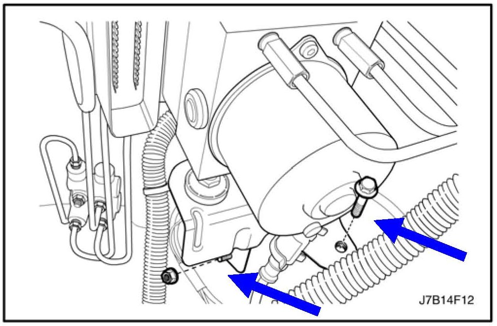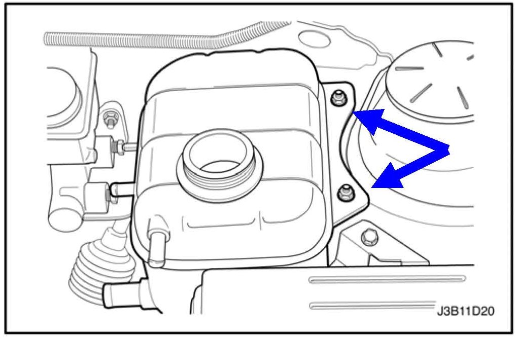 7. Remove the surge tank attaching bolts.