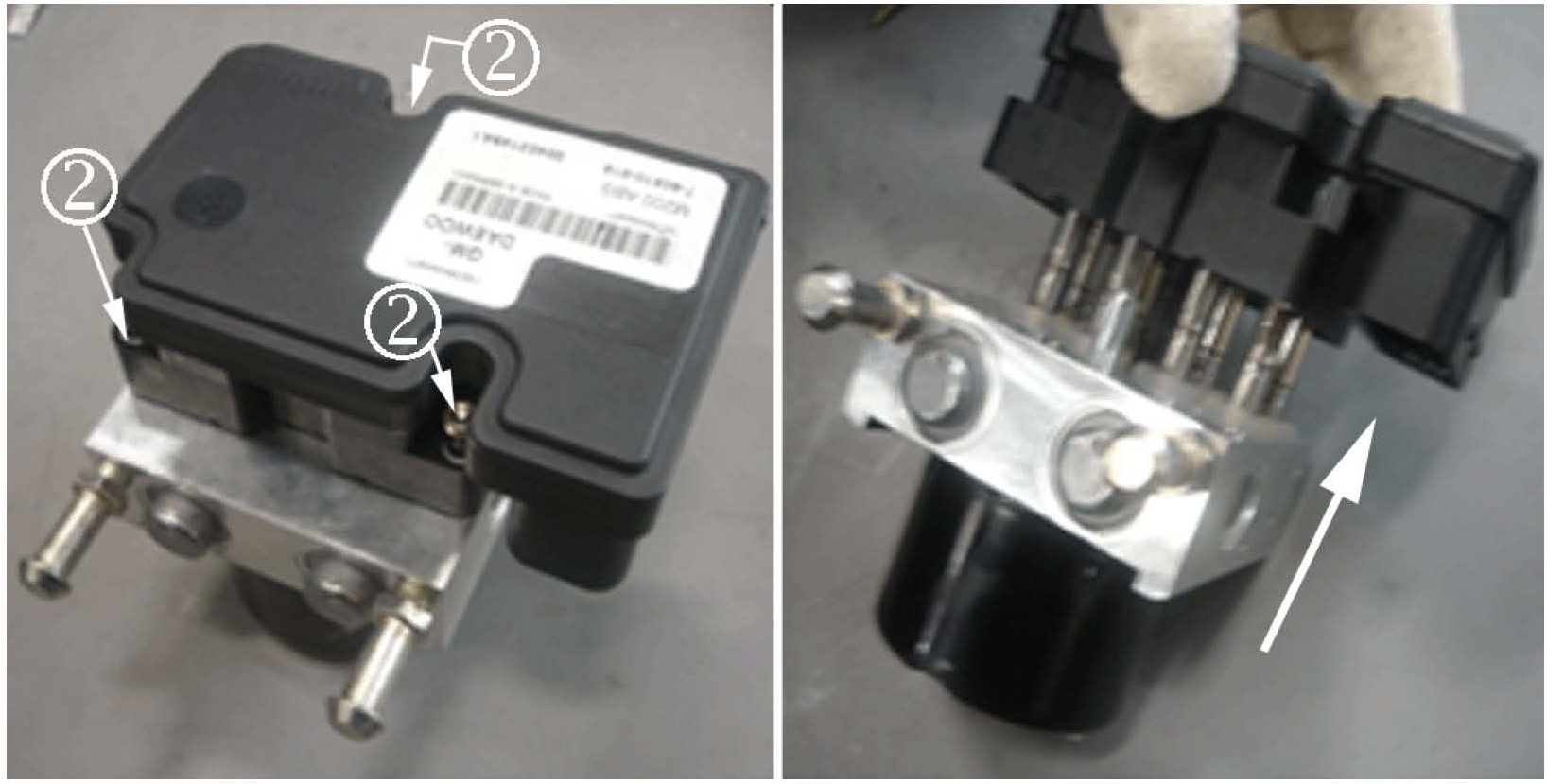 2. Install the two mounting pins to the ABS Hydraulic Modulator.