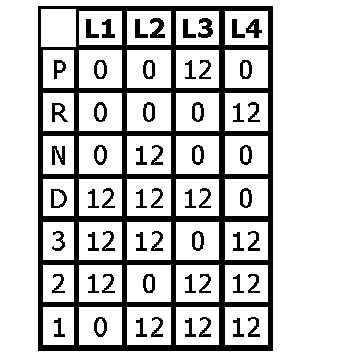 GThe selector lever position is transmitted to the TCM in encoded form along 4 lines. The encoding is such that malfunctions in the connecting lead are identified.