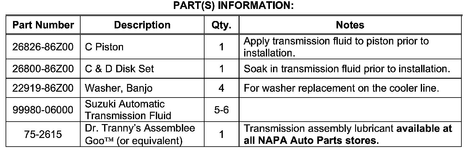 A new C piston is available to repair the transmission on the bench without replacement of the transmission assembly. Please follow the procedure below to remove and install the C Piston and Disk Set C & D.