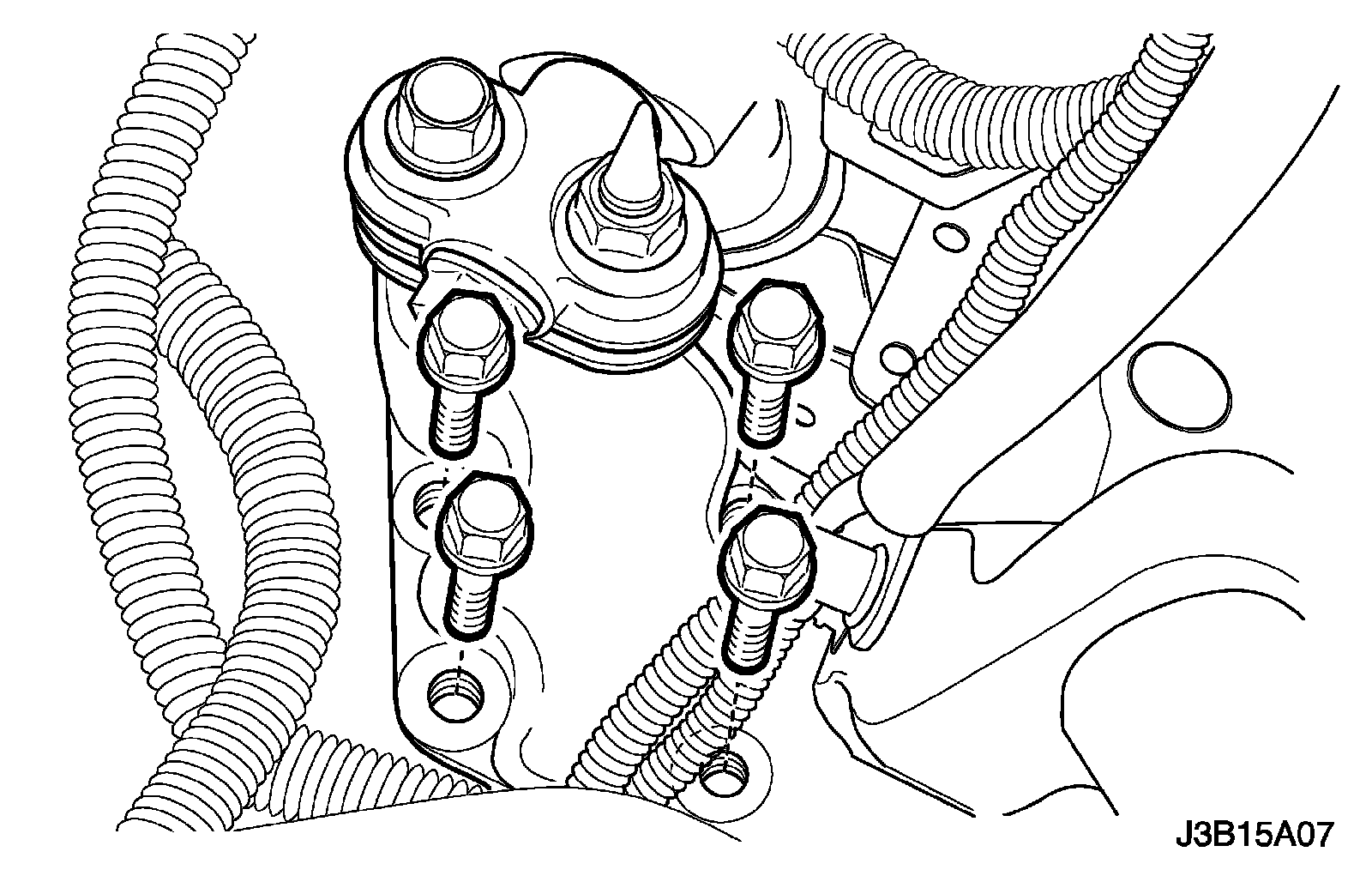 4. Remove the left transaxle mount bracket cage bolts and nut.