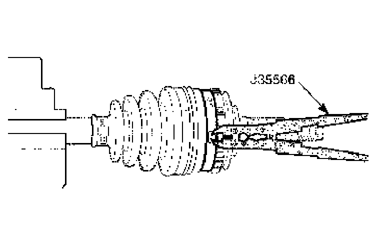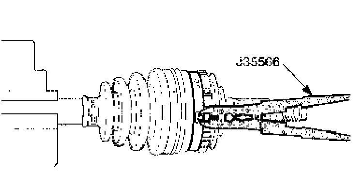 2. Spread the snap ring using the snap ring pliers J-8059 and remove the outer joint the axle shaft.