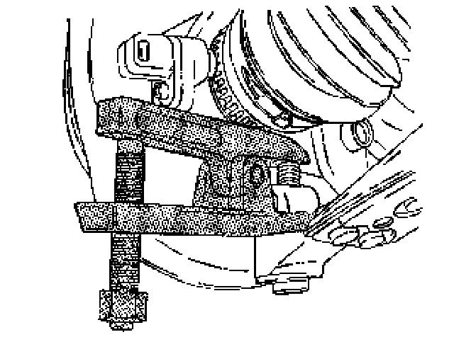 5. Separate the steering knuckle from the lower ball joint using the ball joint separator KM-507B.