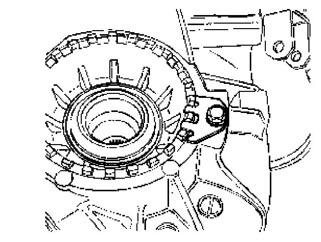 12. Install the bearing-adjusting ring-retainer plate and the bearing-adjusting ring-retainer plate bolt.