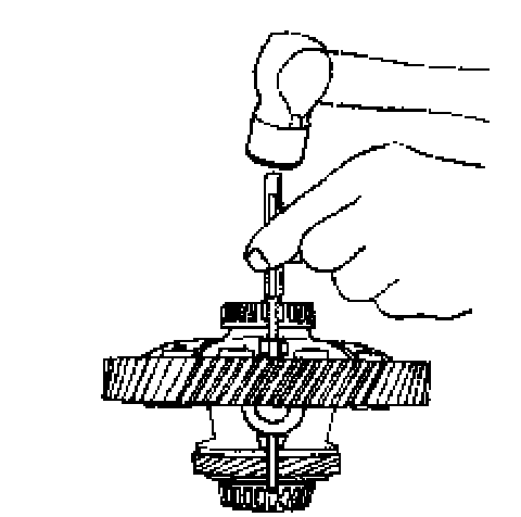 8. Drive the pinion gear shaft lock pin from the differential housing and the pinion gear shaft.