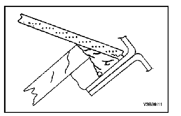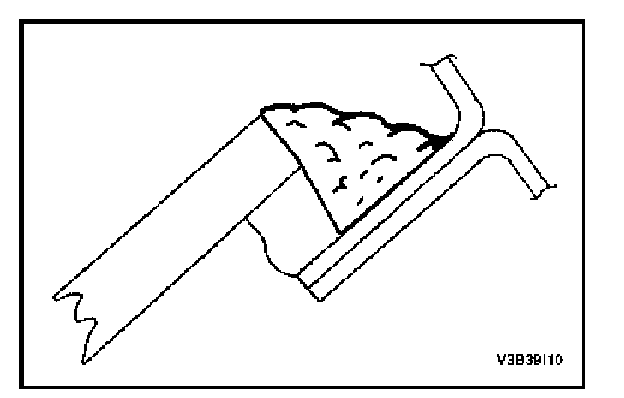 10. Immediately after applying the adhesive, use a flat stick or a similar tool to work the adhesive into the leak area and into the joint between the original material and the vehicle body in order to ensure a watertight seal.
