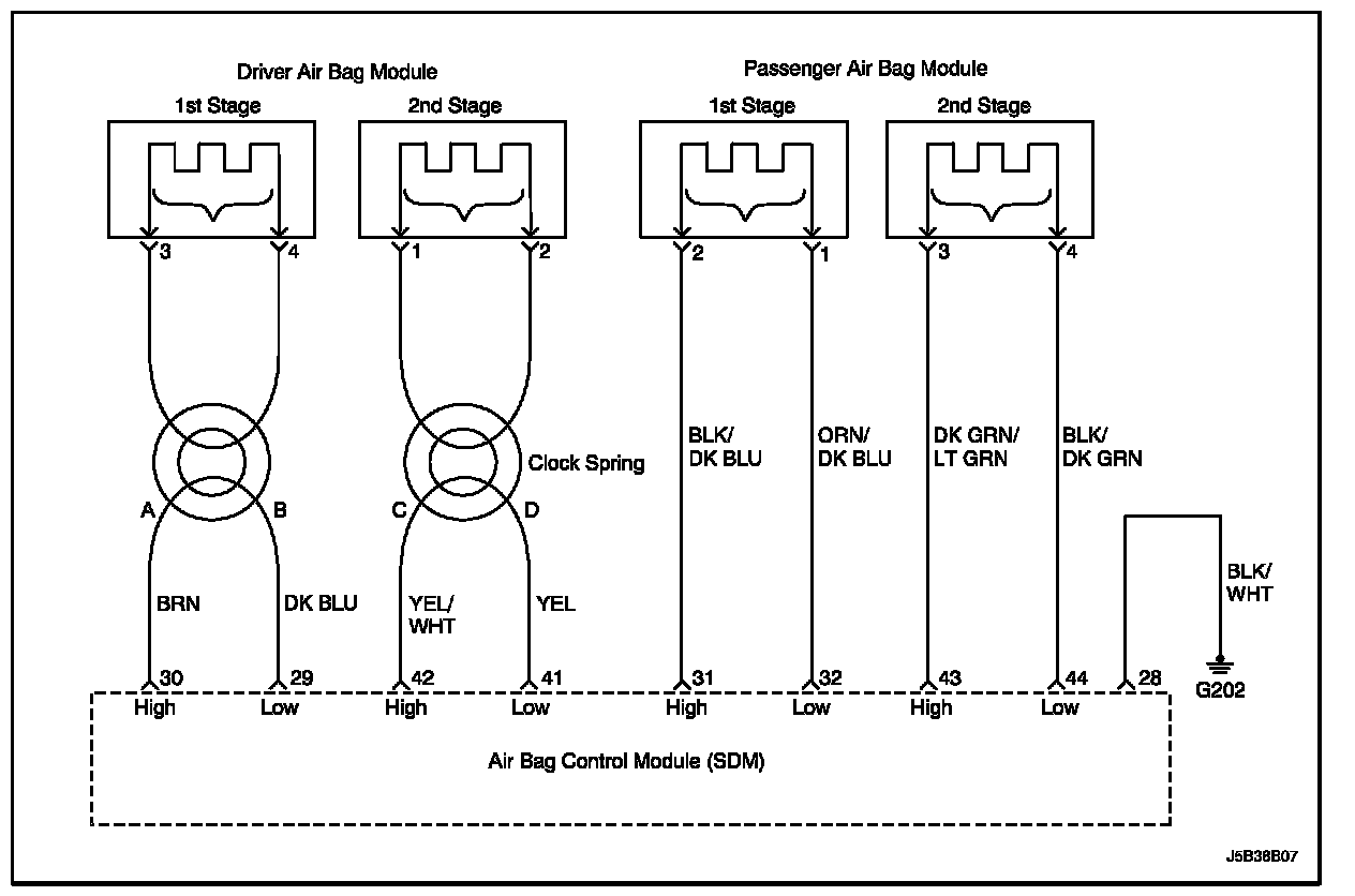 ^ The airbag wiring of 1st stage driver's high is shorted to battery wiring.
