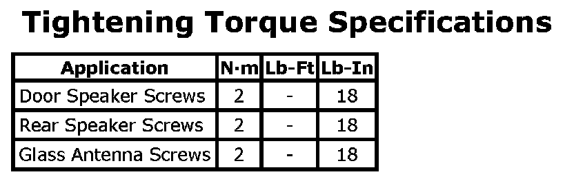 Tightening Torque Specifications: