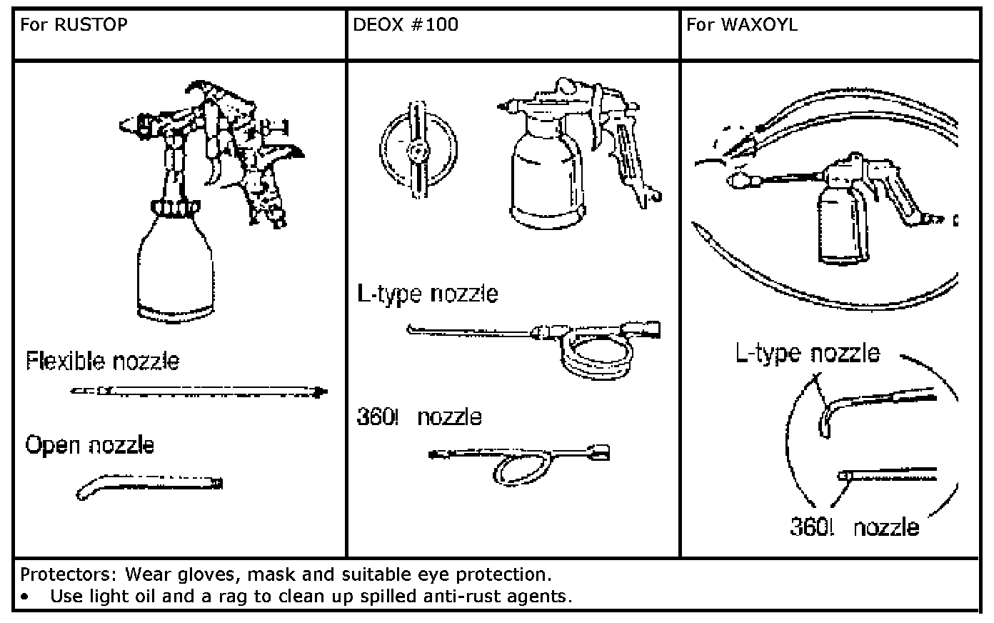 WARNING: ANTI-RUST agents contain substances that are harmful if you breathe or swallow them, or get them on your skin. Wear converalls, gloves, eye protection, and an approved respirator while using such agents.